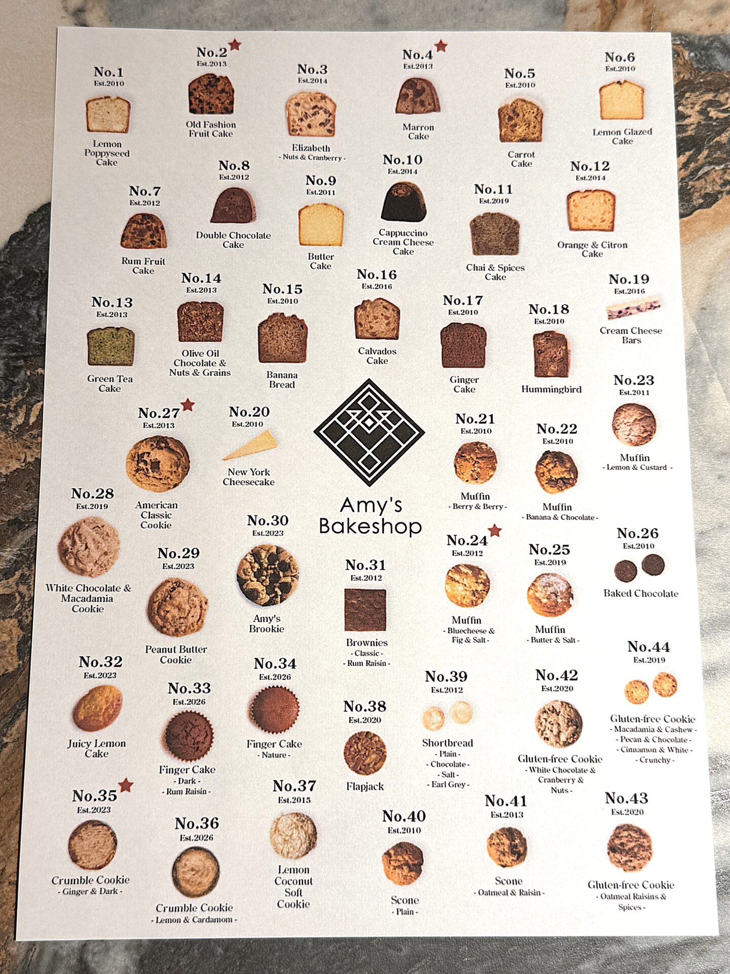 【エイミーズ・ベイクショップのメニュー】
