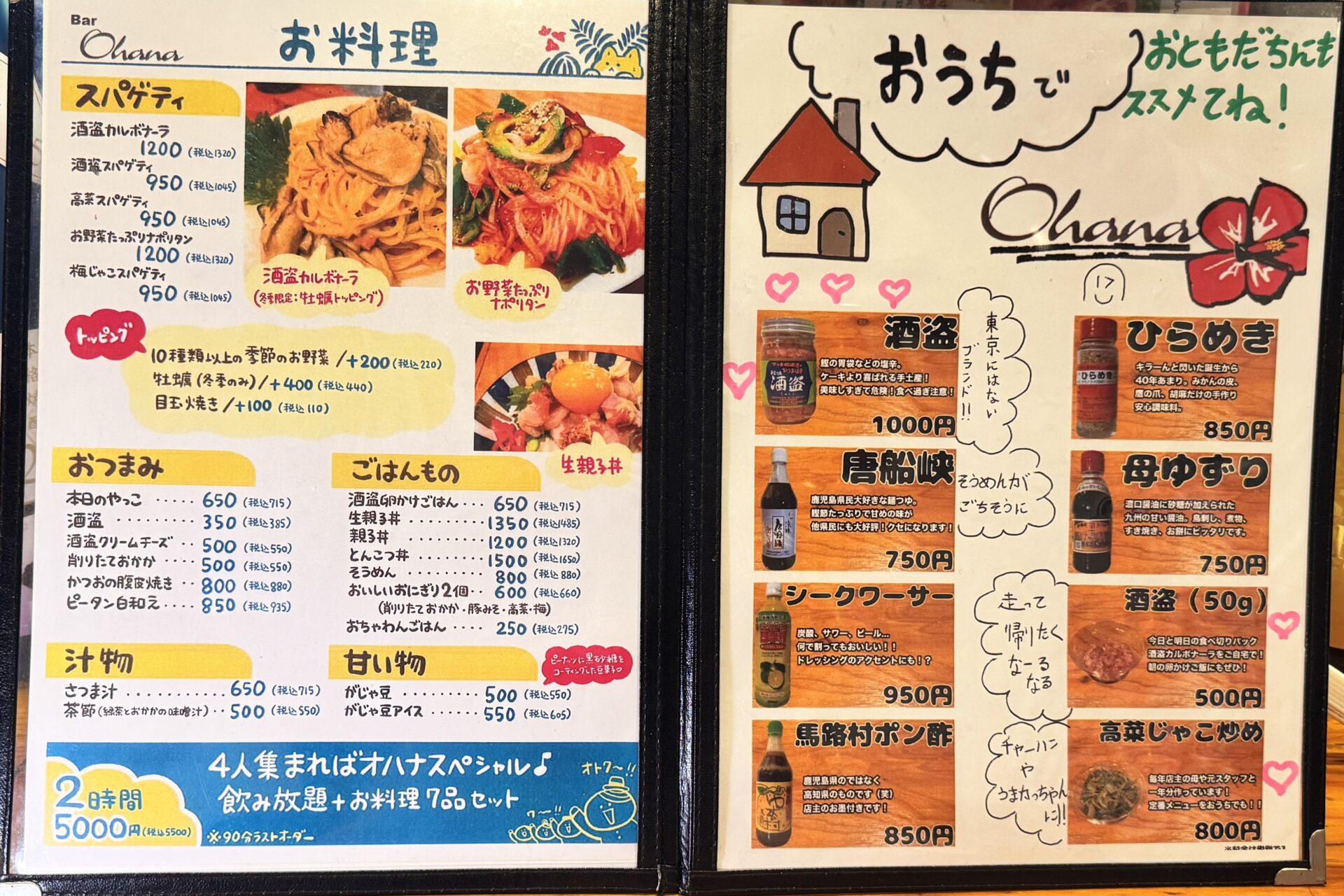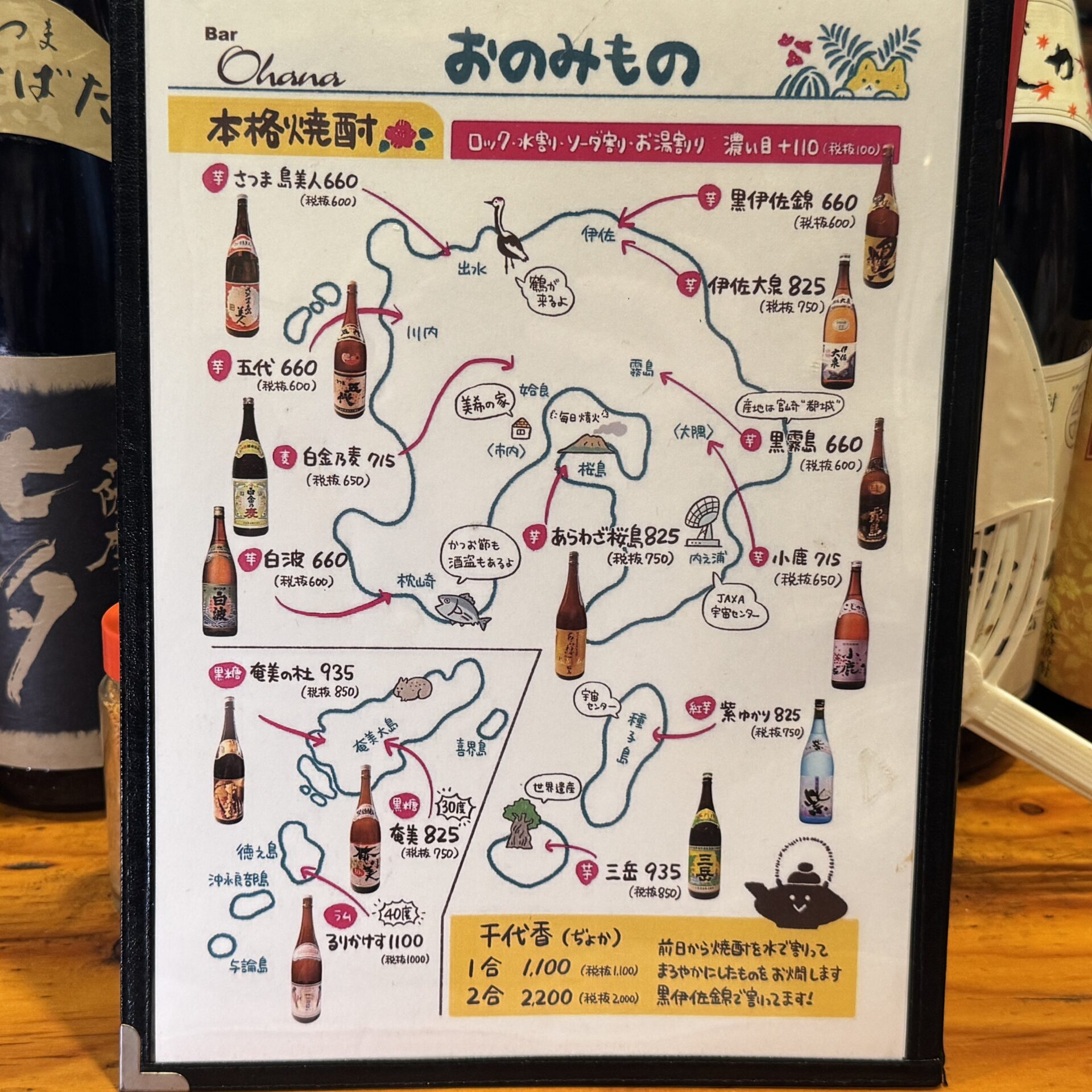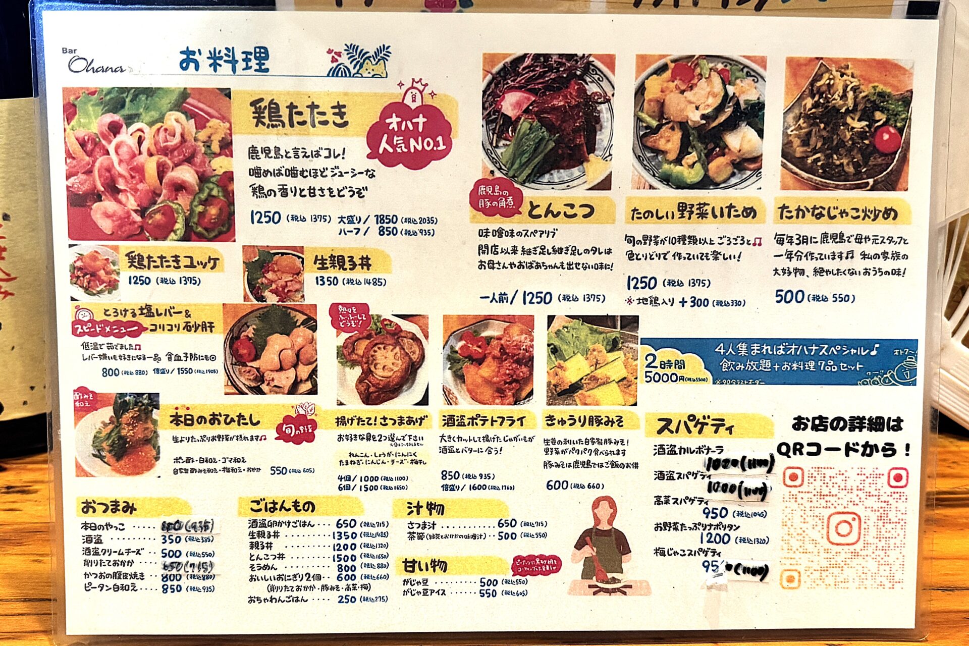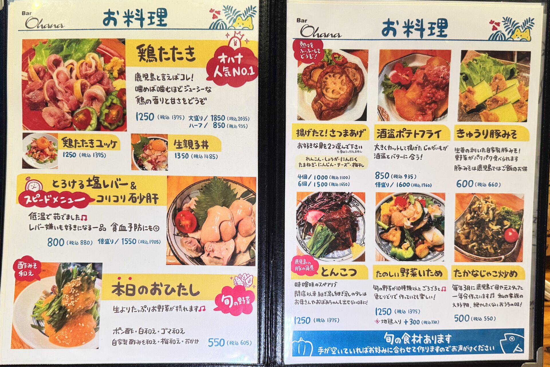 吉祥寺の鹿児島料理居酒屋「バーオハナ」のメニューと値段