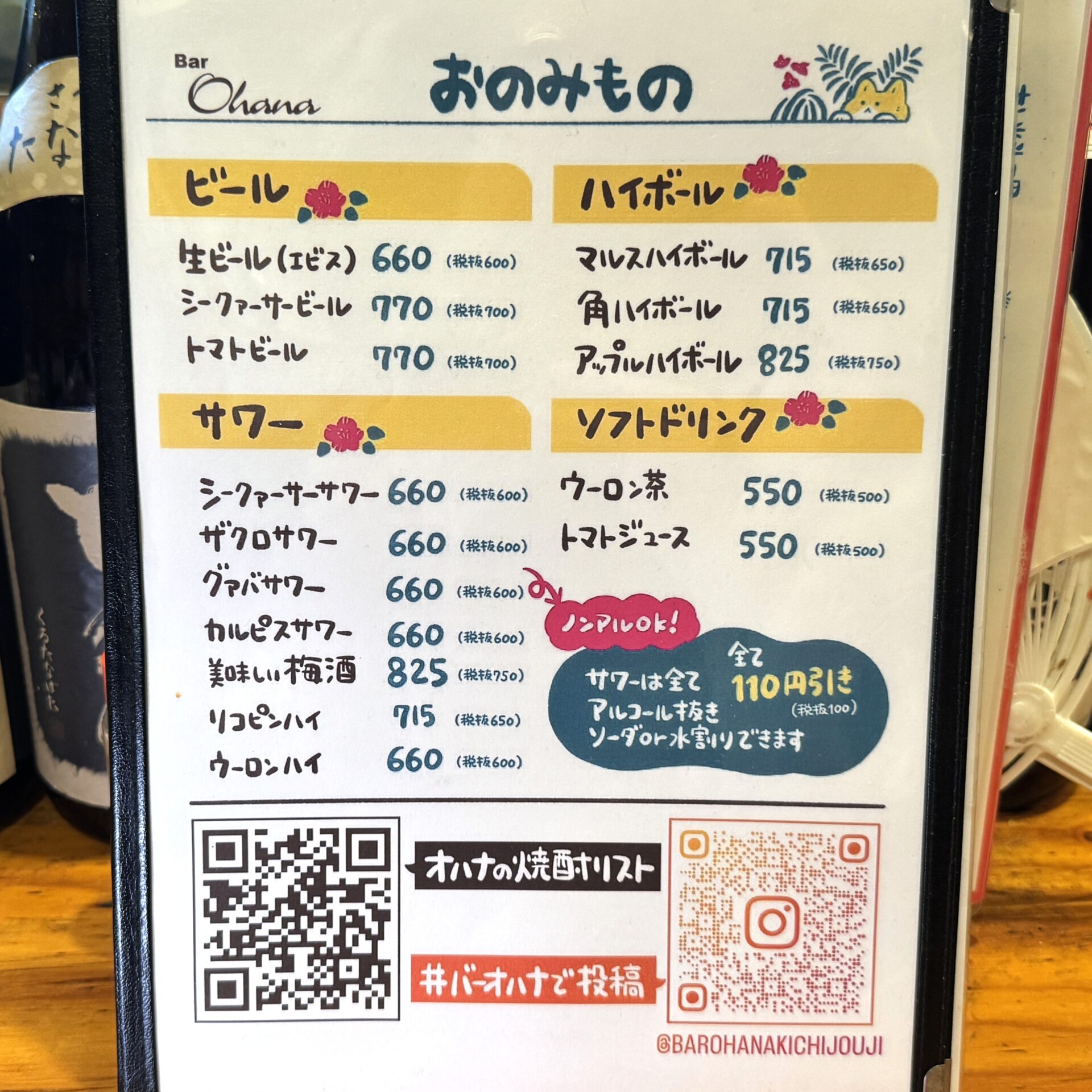 公式SNS | @barohanakichijoji @dareyame @BarOhanaTokyo |