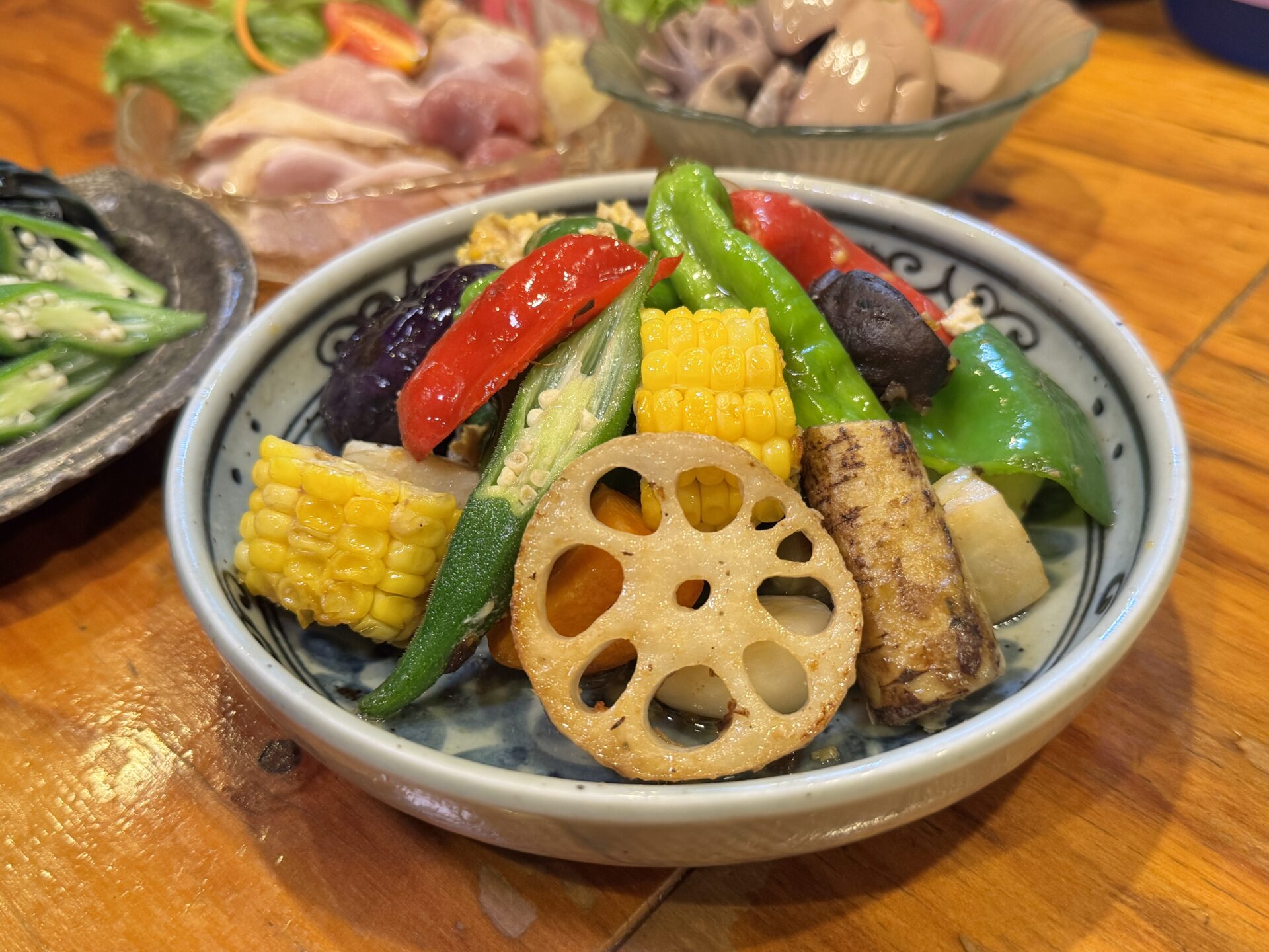 大人になるとなかなか取りづらくなる野菜🫑、おひたし🥬、お味噌汁など、嬉しいメニューが沢山✨ 鹿児島料理の「鶏たたき」「さつまあげ」「さつま汁」なども楽しめます。