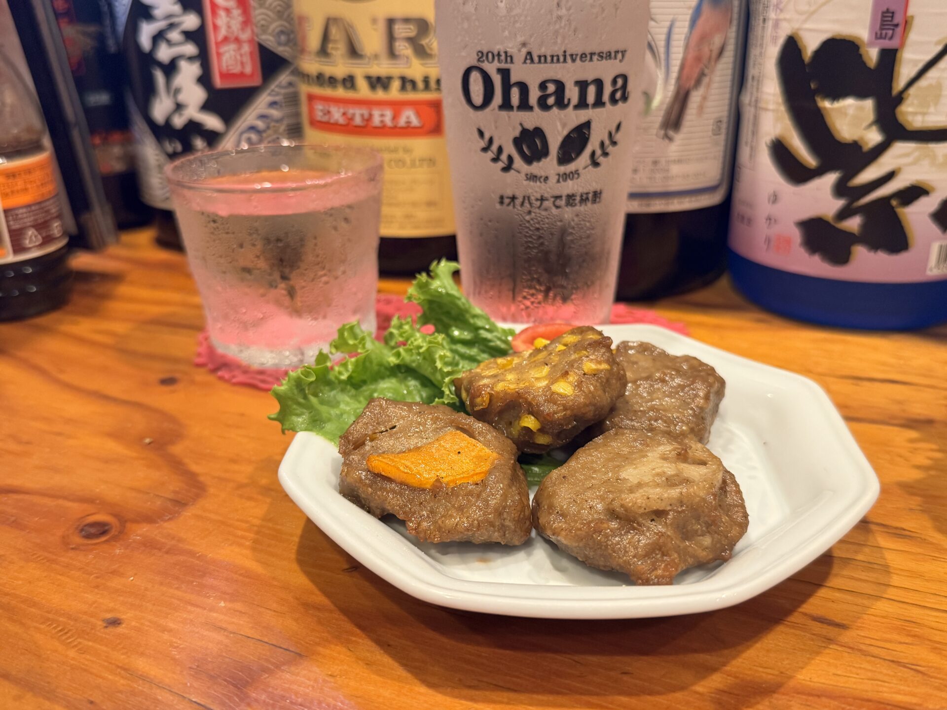 オハナの人気メニュー。鹿児島と言えばコレ!揚げたての熱々で提供されます!れんこん、しょうが🫚、にんにく🧄、たまねぎ🧅、にんじん🥕、チーズ🧀、梅干し、の中から好きな具を2つ選ぶことができます✨