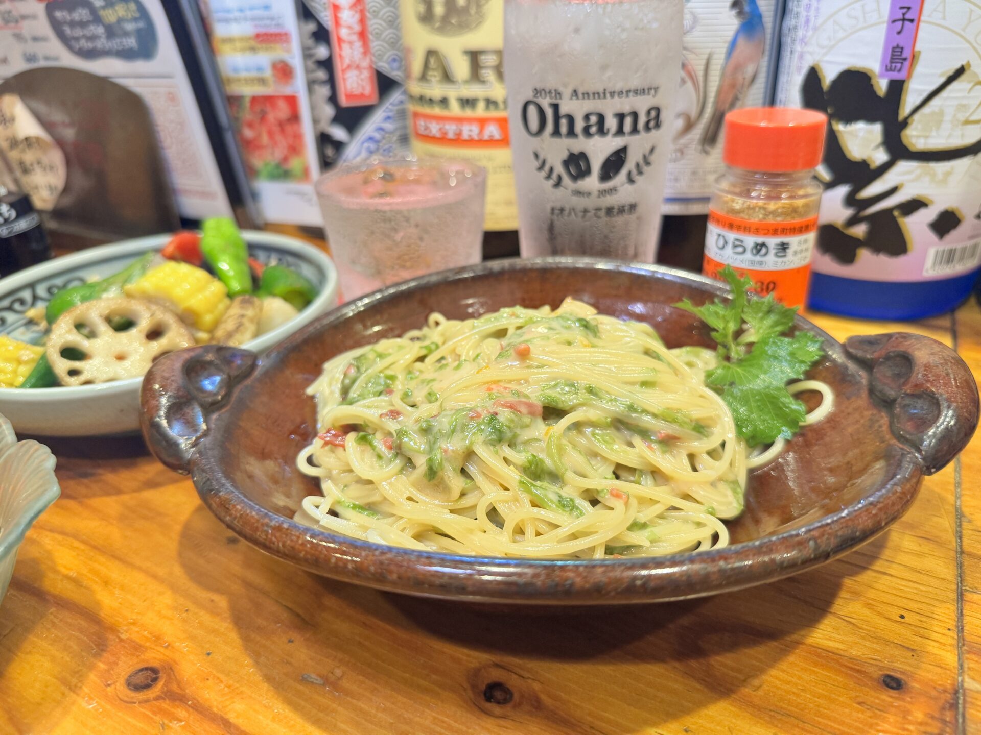 5種類以上あるパスタメニューの中でも人気No.1🥇 酒盗(カツオの塩辛)と生クリームの絶妙なハーモニー!他ではあまり味わえない組み合わせで、これが本当に絶品です😍