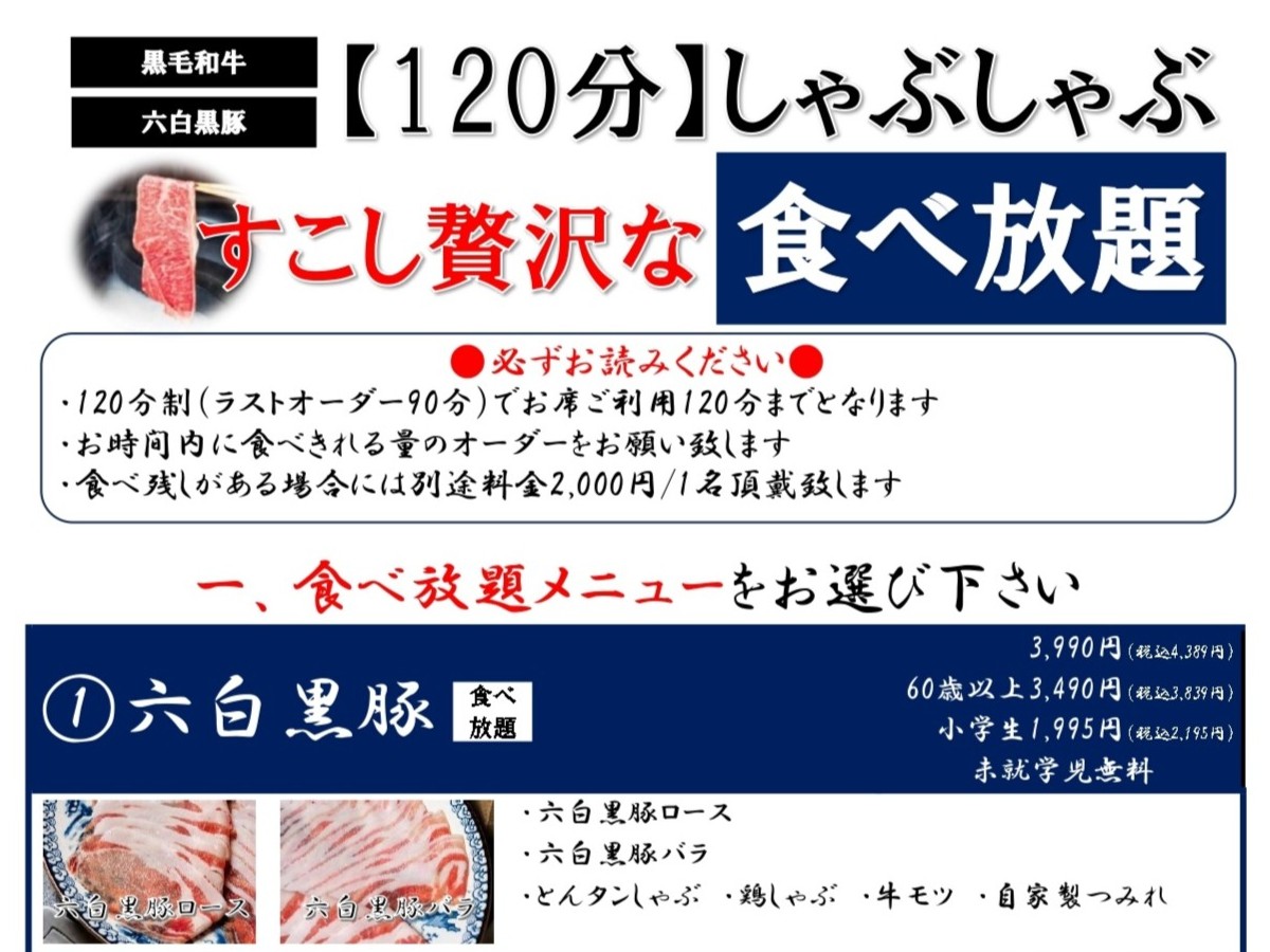 【しゃぶしゃぶ食べ放題 六白黒豚】