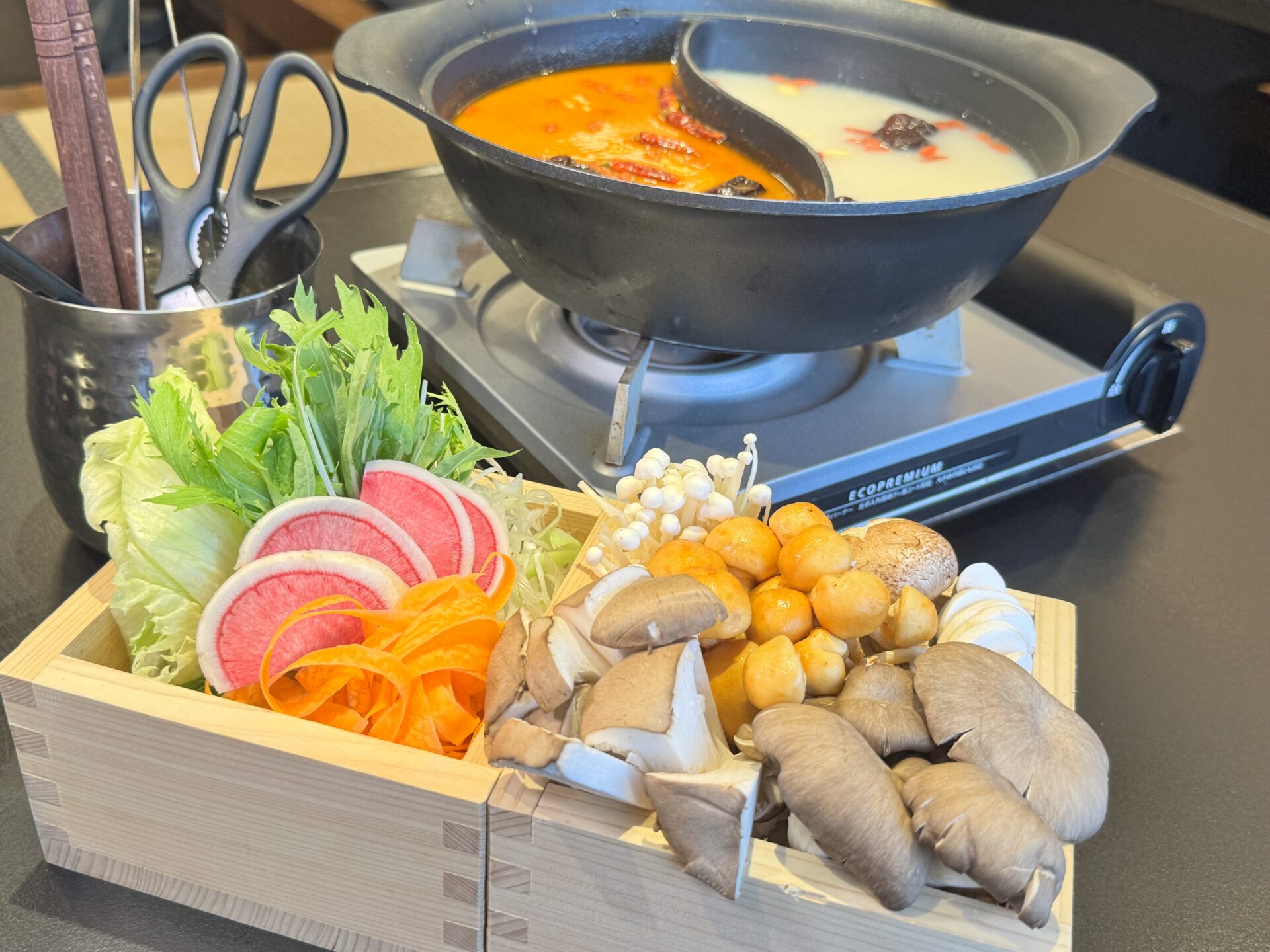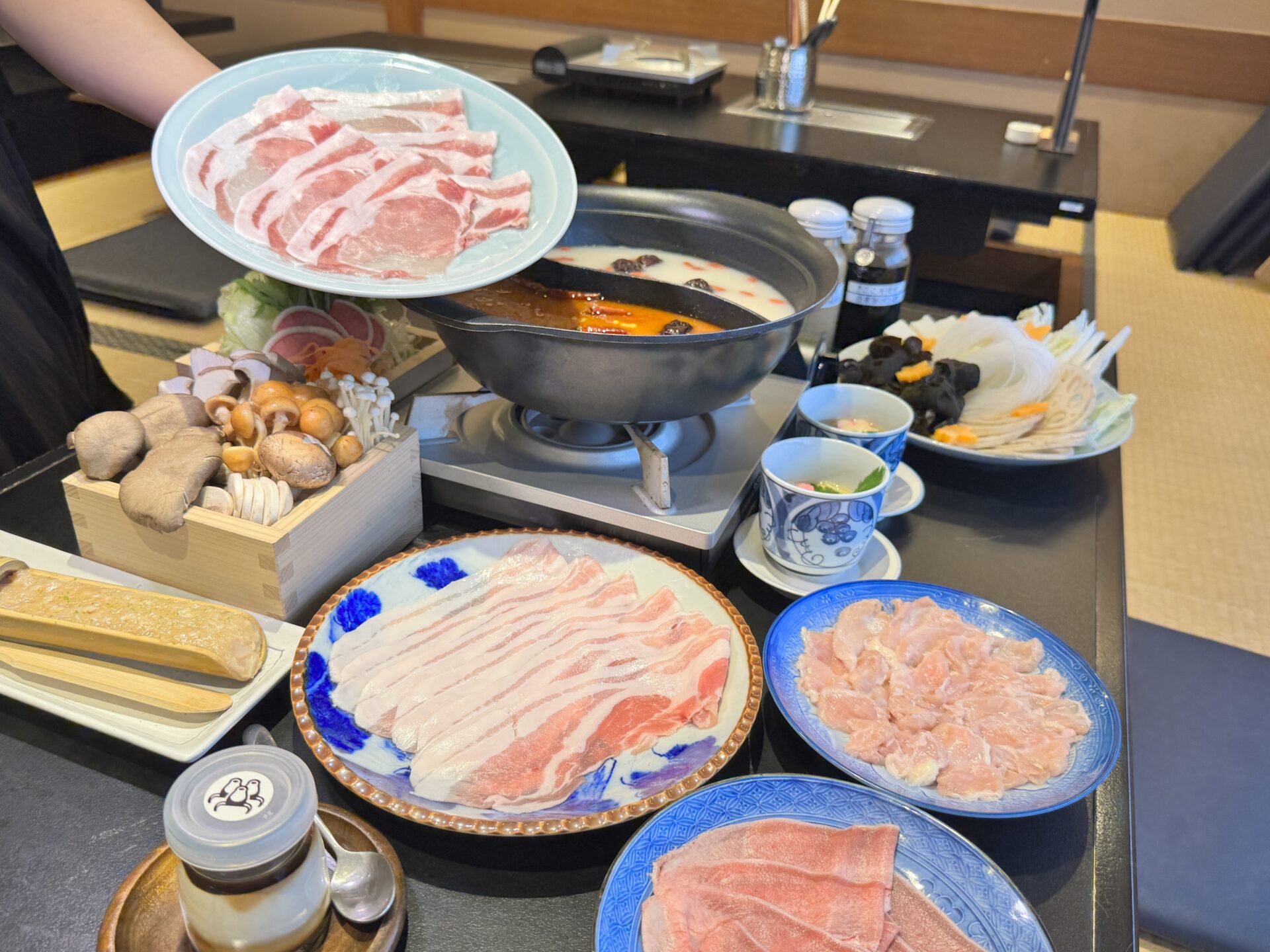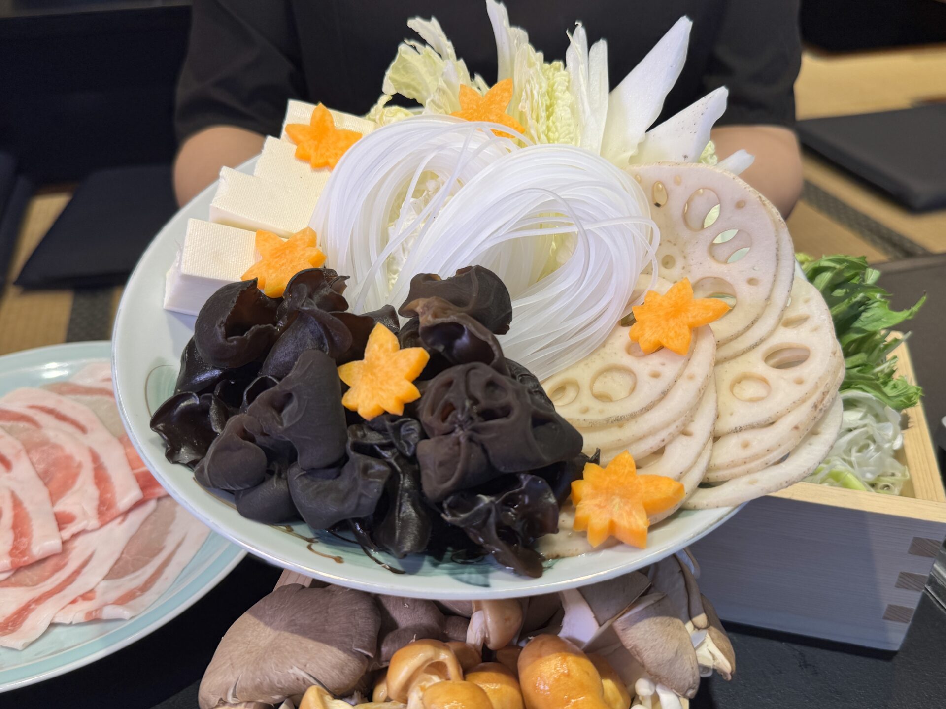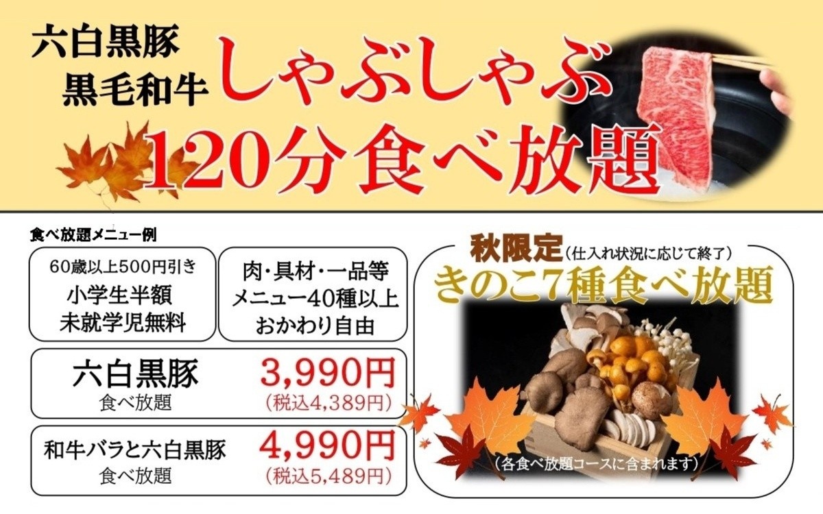 六白黒豚しゃぶしゃぶ食べ放題が税別3,990円で、40種類以上がおかわり自由、野菜🥬も、きのこ7種類🍄も食べ放題は本当にお得すぎです✨ 是非行ってみてください🏃