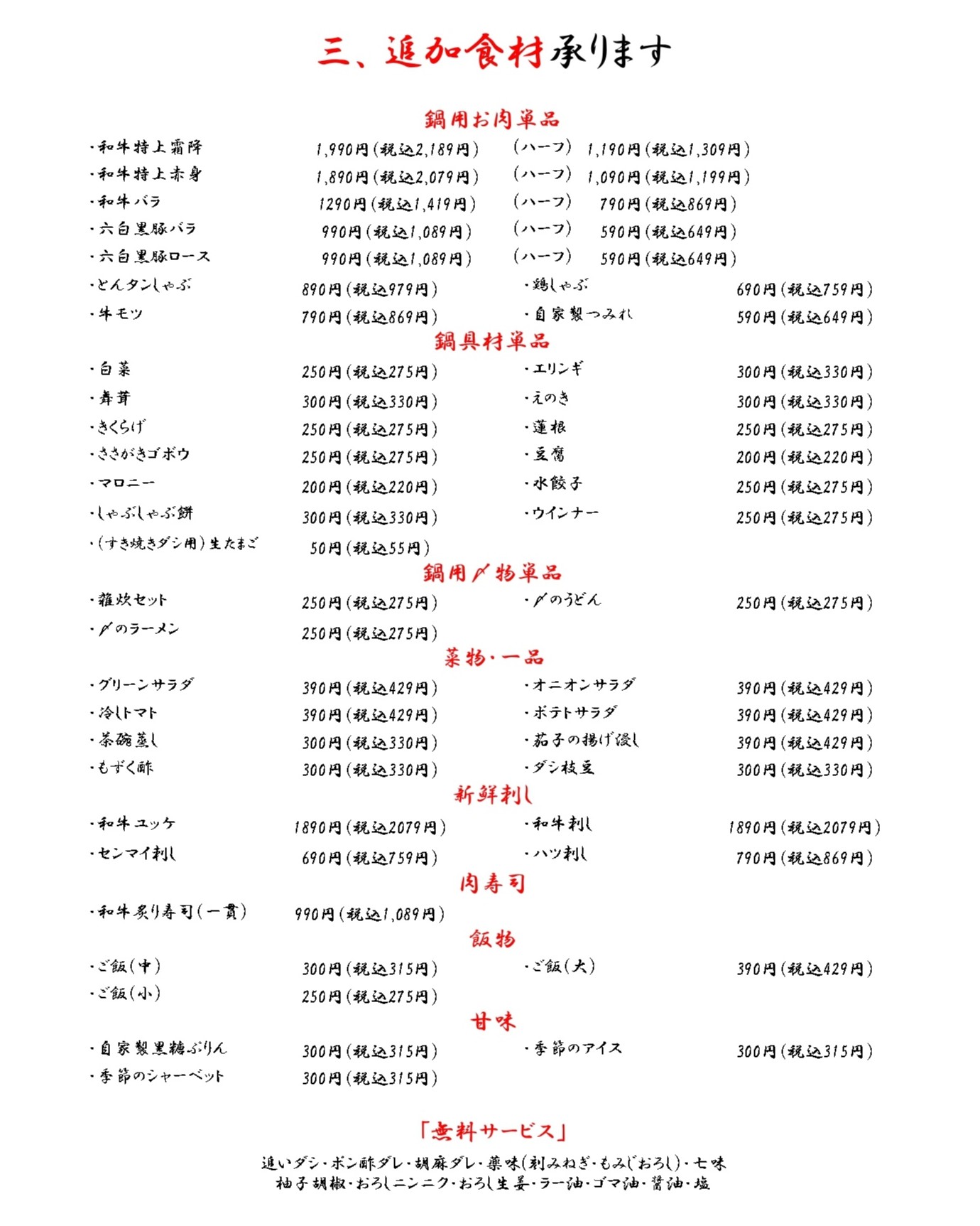 西荻窪の「しゃぶしゃぶ犇く」のメニューと値段