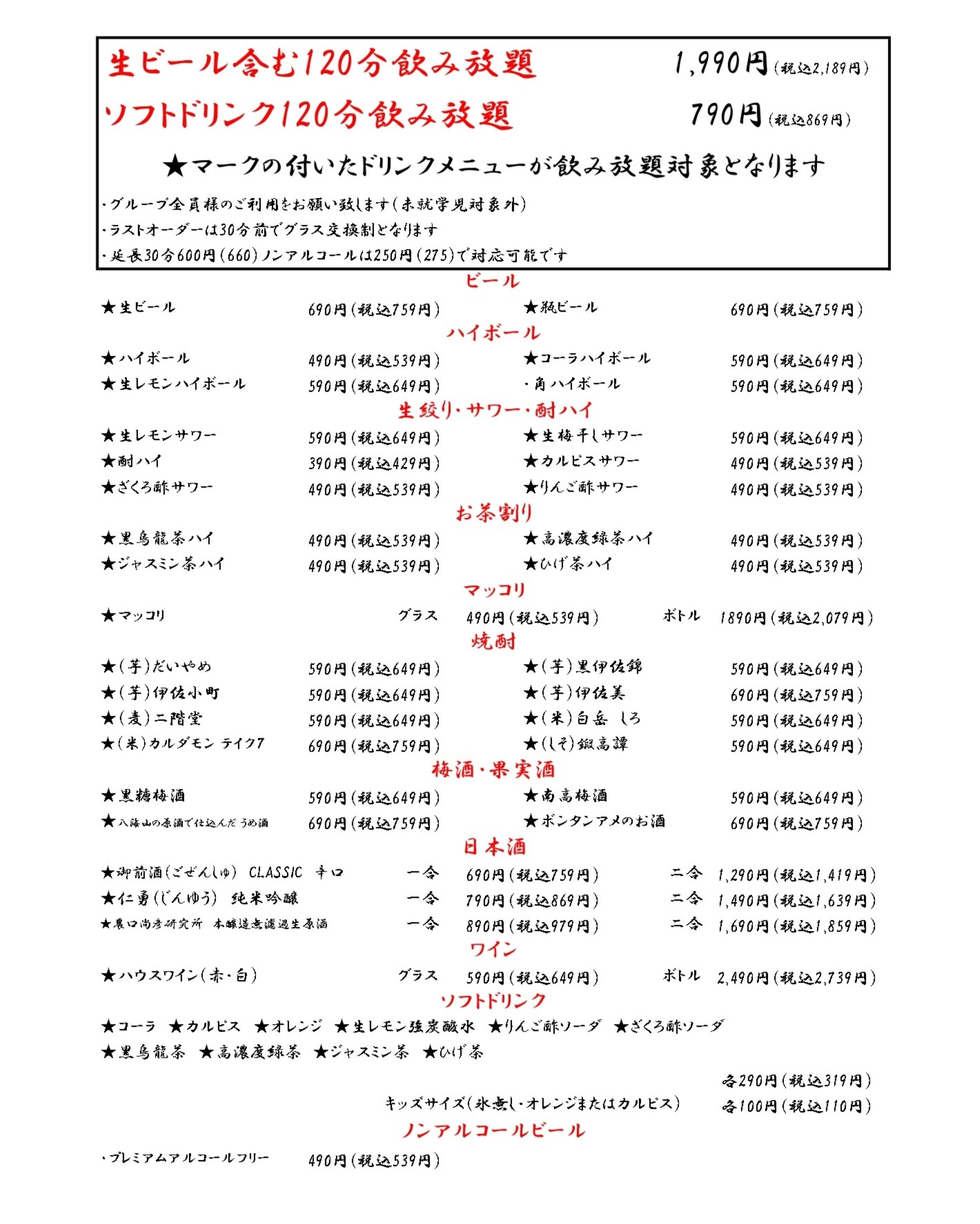 【しゃぶしゃぶ犇くのドリンクメニュー】