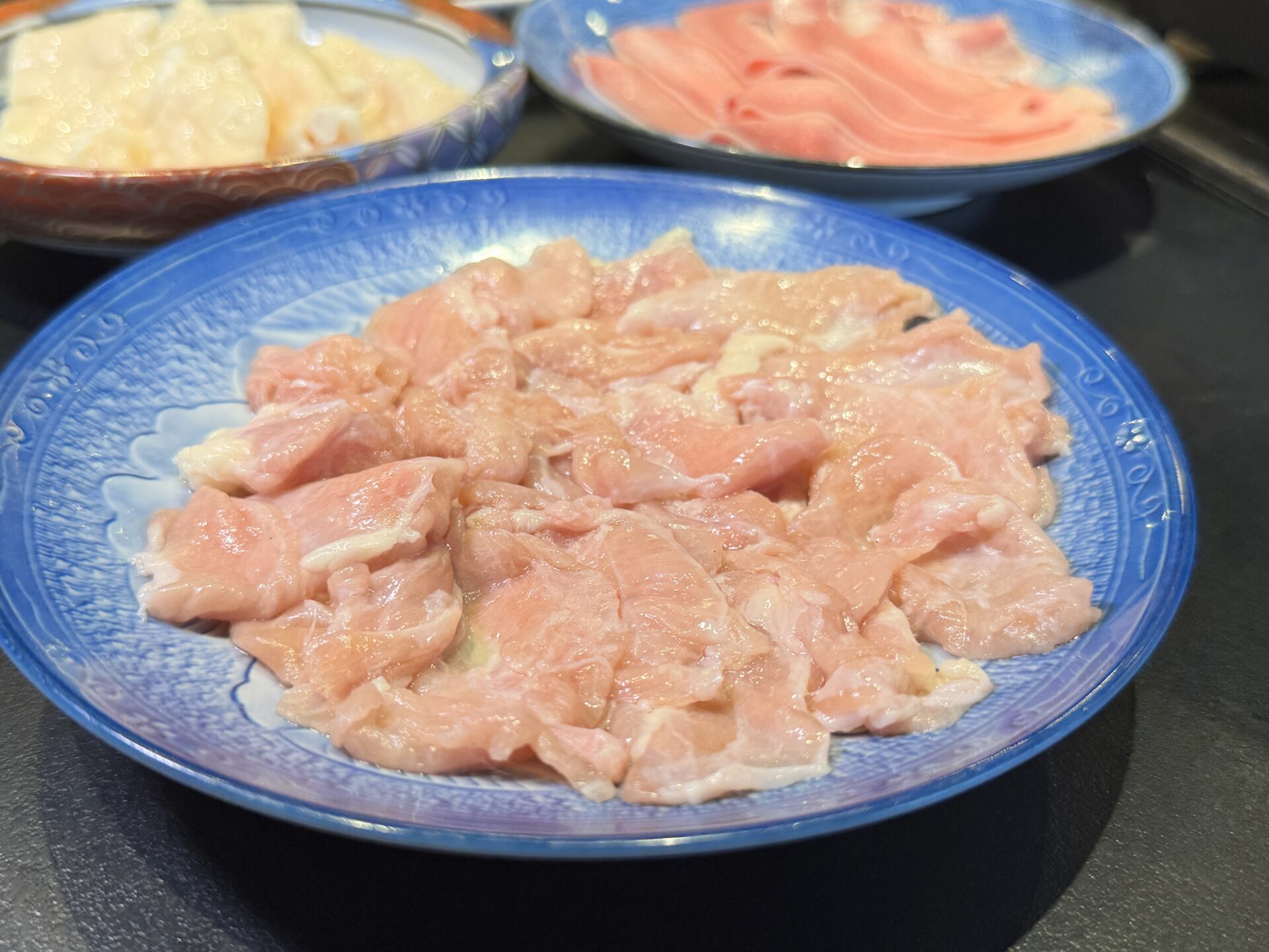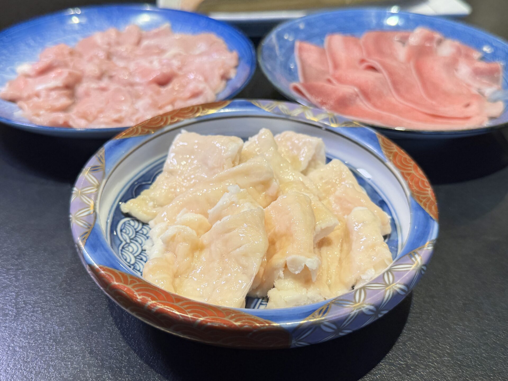 ・六白黒豚のロース・六白黒豚バラ・とんタンしゃぶ・鶏しゃぶ・牛モツ・自家製つみれ