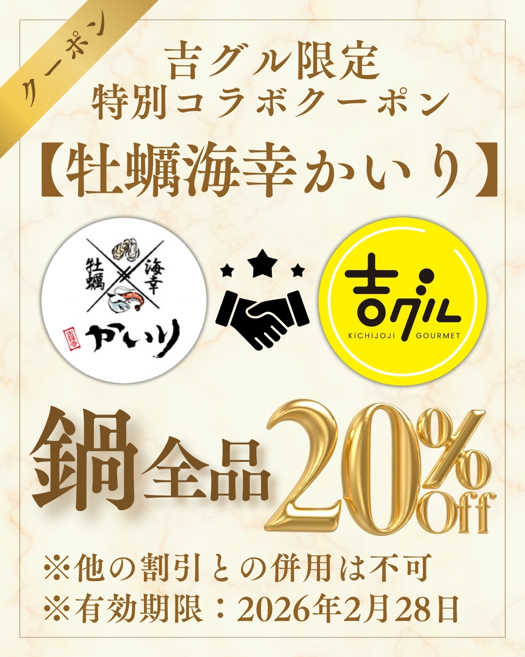 TVや雑誌・SNSでも話題の「痛風鍋」が名物の海鮮居酒屋「牡蠣海幸かいり」は、2025年11月1日(土)、吉祥寺にオープンしたお店です。