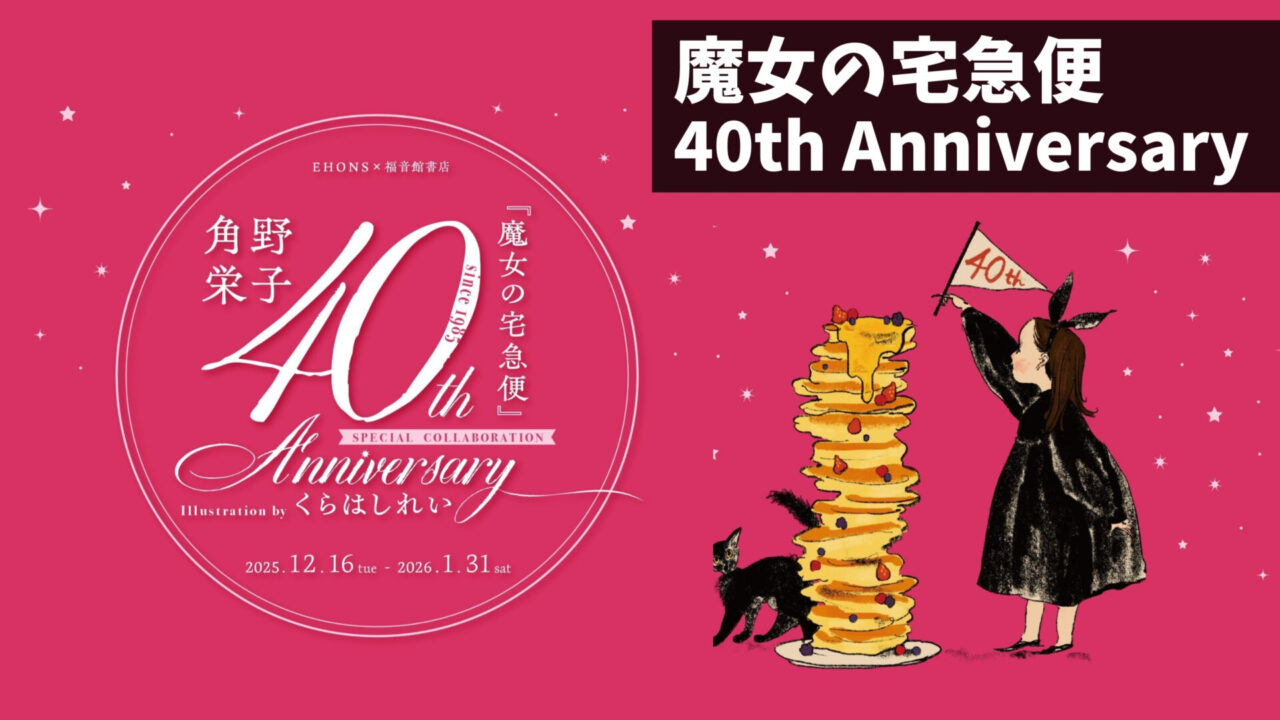 角野栄子さんの『魔女の宅急便』刊行40周年を記念し、2025年12月16日(火)から、EHONS、丸善ジュンク堂書店の計75店舗でフェアが開催されます✨