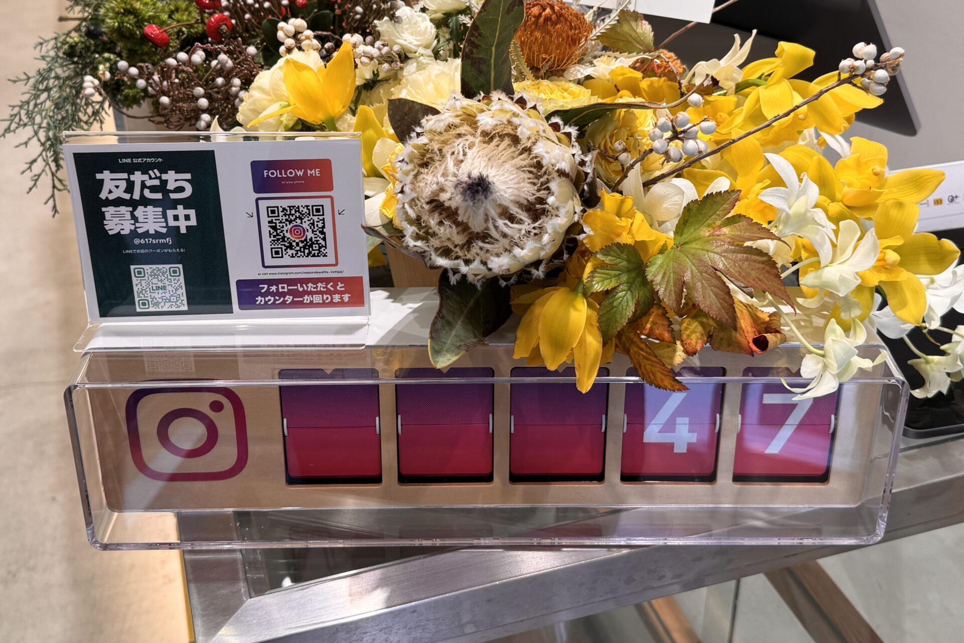 店内の入口には、リアルタイムInstagramカウンターが置いてあり、Instagramのフォロワー数がリアルタイムにわかるようになっています。