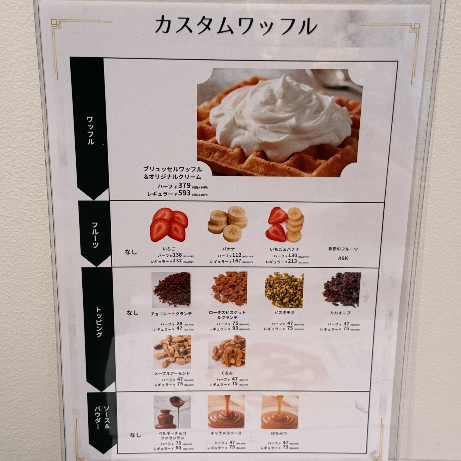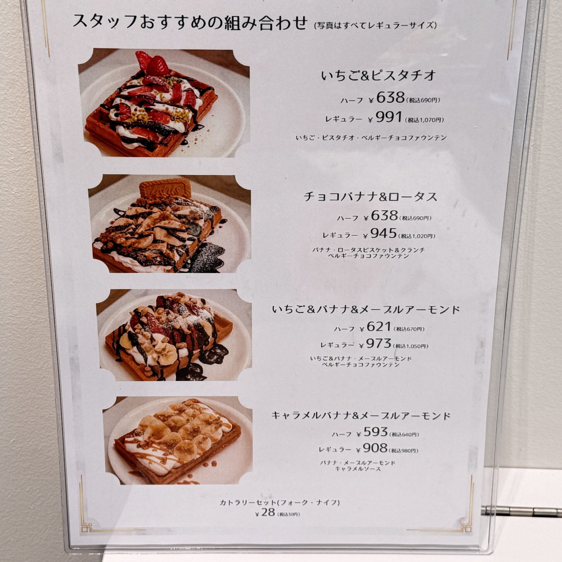 吉祥寺のブリュッセルワッフル専門店「メゾンドワッフル」で注文したメニュー