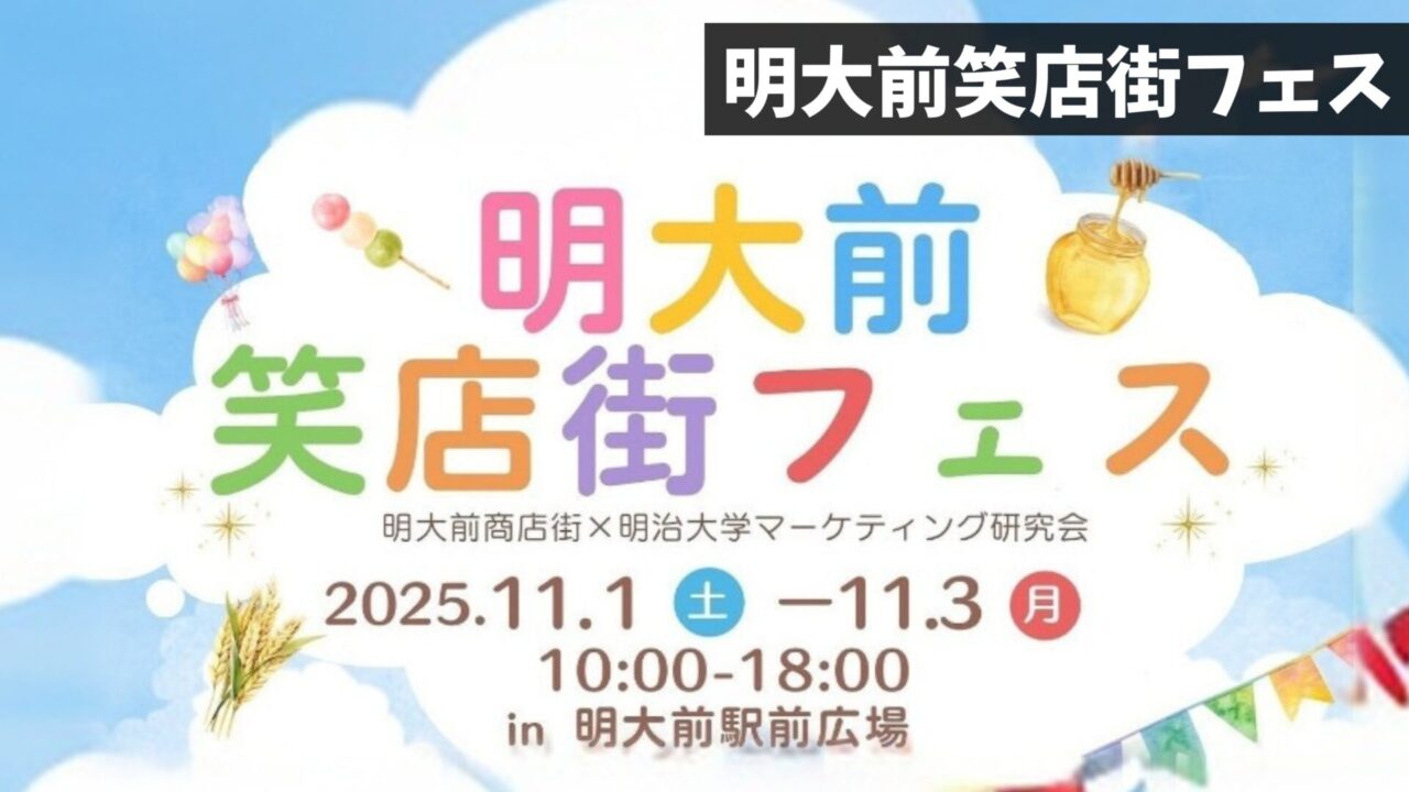 明大前駅前広場にて、2025年11月1日(土)~11月3日(月祝)の3日間、「明大前笑店街フェス」が開催されます!