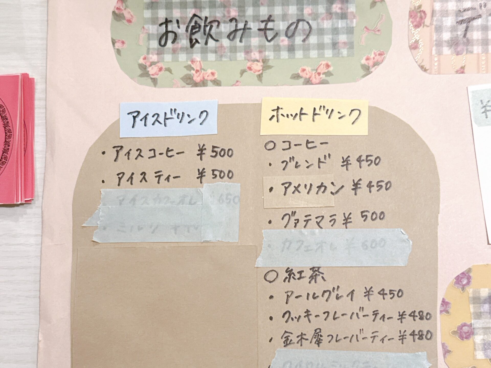 【喫茶室 秘密の花園のドリンクメニュー】