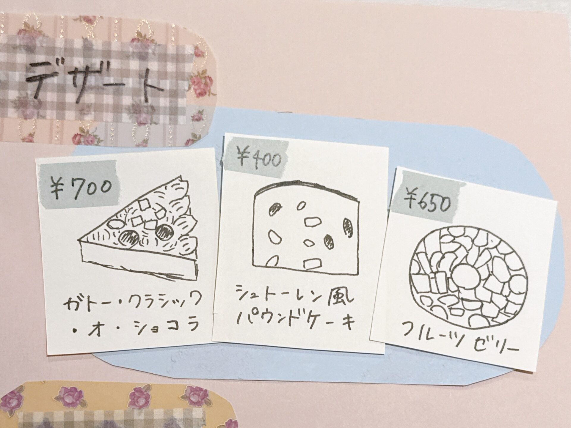 【喫茶室 秘密の花園のデザートメニュー】