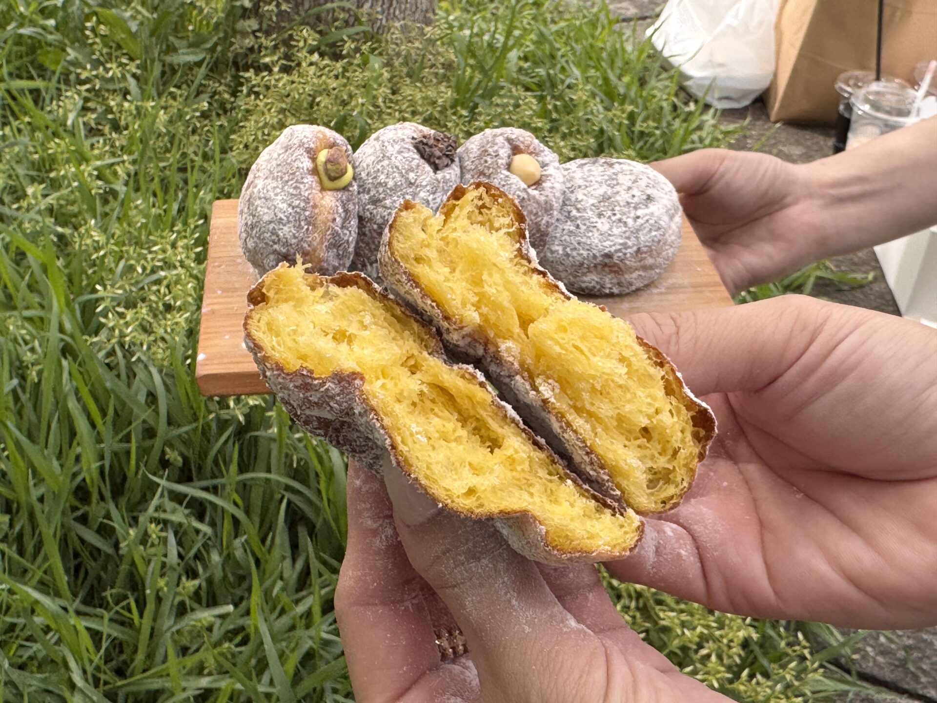 購入後はできるだけその日のうちにそのまま食べてほしいとのことですが、もしご自宅の冷蔵庫などで保存される場合は、「食べる前に約10分ほど常温に戻してから」食べると、冷えた生地が常温に戻り美味しく食べられるそうです👍️ 保存方法に関する注意書きのメモを同封してもらえるので、受け取ったらしっかりチェックしてください👀