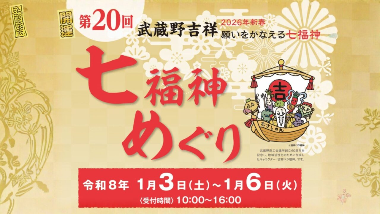 武蔵野市内の七福神をめぐる、新春恒例の開運イベント「武蔵野吉祥 七福神めぐり」が、2026年1月3日(土)~6日(火)に開催されますので詳しく紹介します!