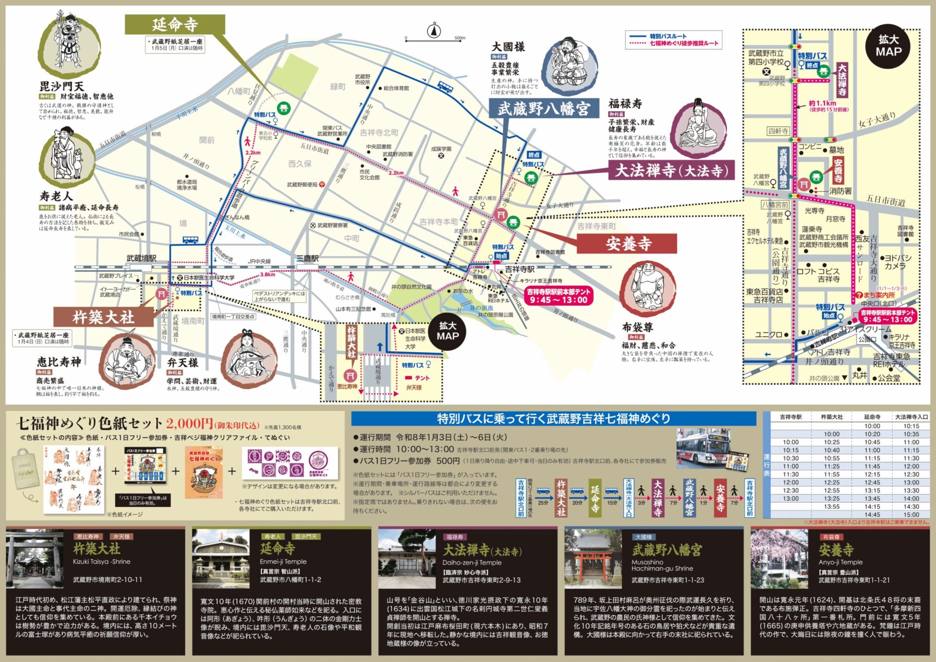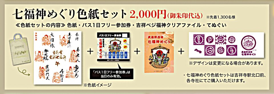 ※期間中、「七福神めぐり色紙セット」を購入の方は特別バスの乗車料金が無料となります。