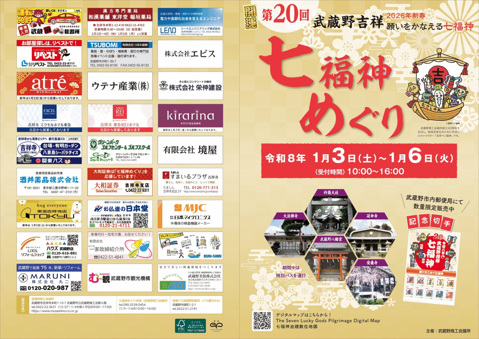 武蔵野市内の七福神をめぐる、新春恒例の開運イベント「武蔵野吉祥 七福神めぐり」が、2026年1月3日(土)~6日(火)に実施されます!