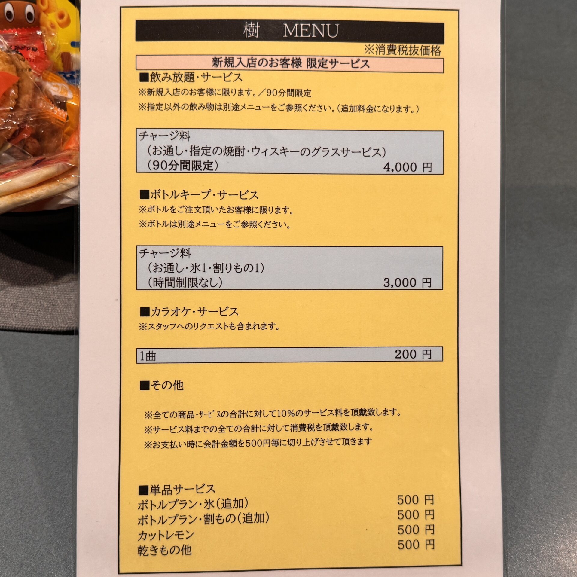 吉祥寺のスナック「MUSIC BAR 樹」のメニューと値段を紹介します。