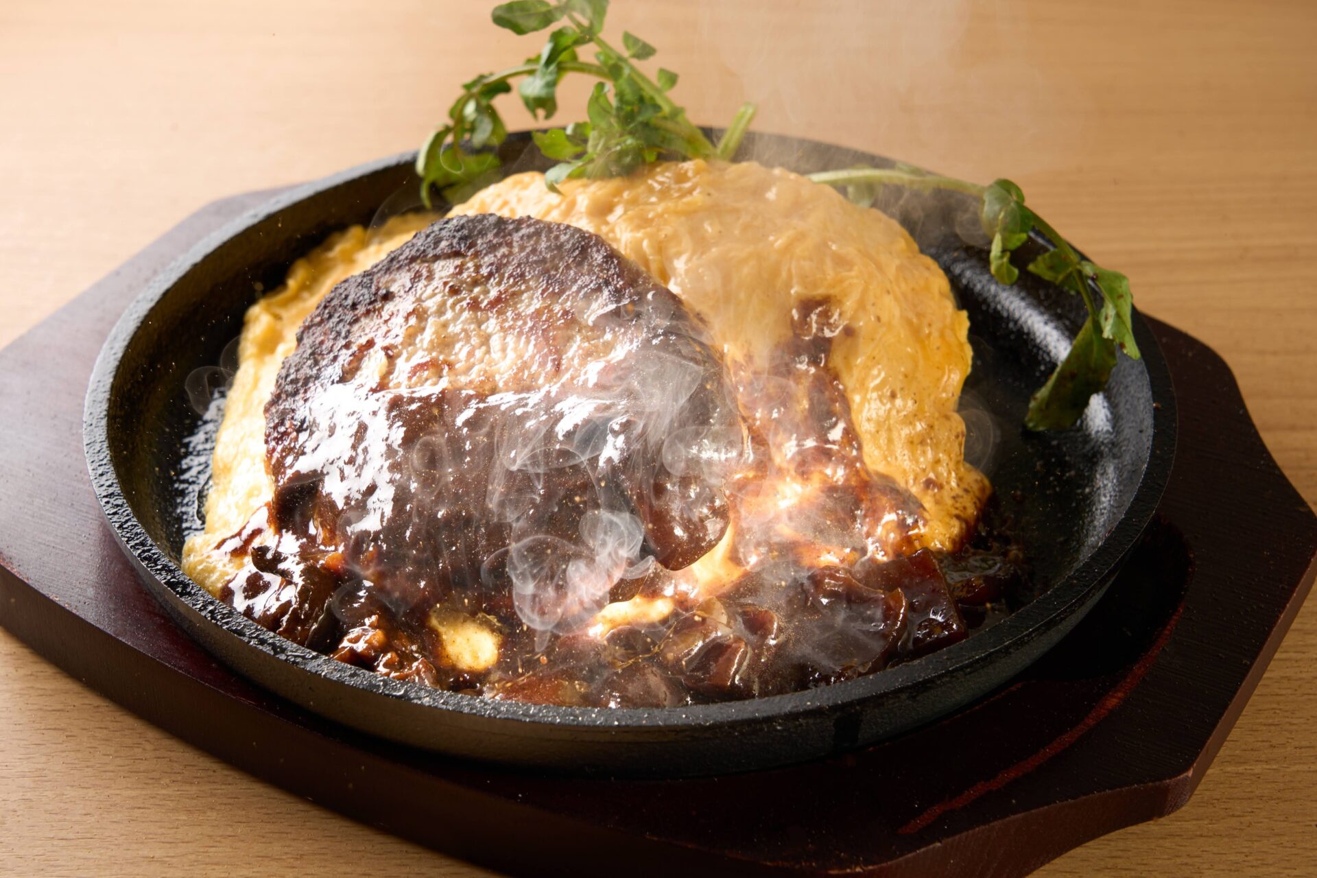 オムライス専門店だからこそ、考えついた肉とたまごの一体化。肉、たまご、そして肉とたまごと相性の良いチーズ、皆が大好きな食材を1皿に凝縮した一品を提供!