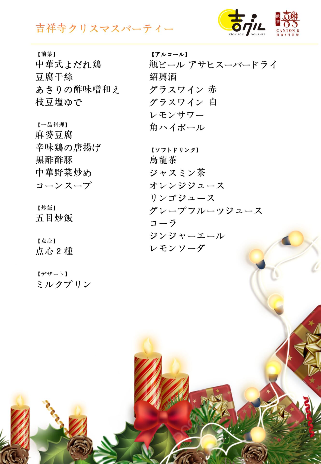 「コピス吉祥寺」の3階にあるミシュラン二つ星の姉妹店「CANTON8茶楼」を貸し切りにして70名でクリスマスパーティーを開催します! 3時間飲み放題とビュッフェスタイルの料理です。「CANTON8茶楼」がオープンして以来、最大人数のパーティ、かつ、初めてのビュッフェスタイルです!