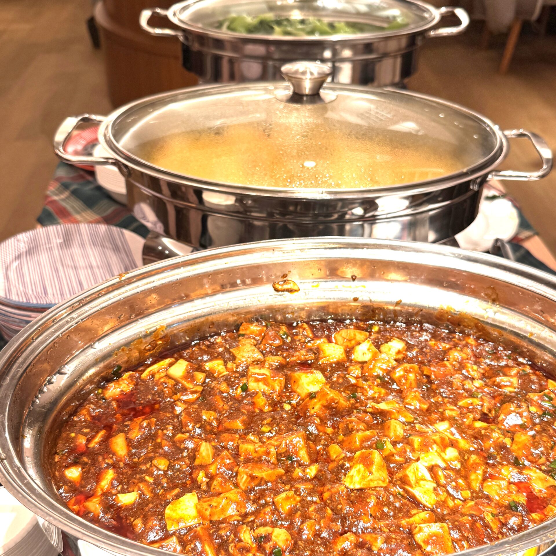 開催場所「CANTON8茶楼」での当日のお料理と飲み物を紹介します。ビュッフェスタイル(セルフサービス形式)です。