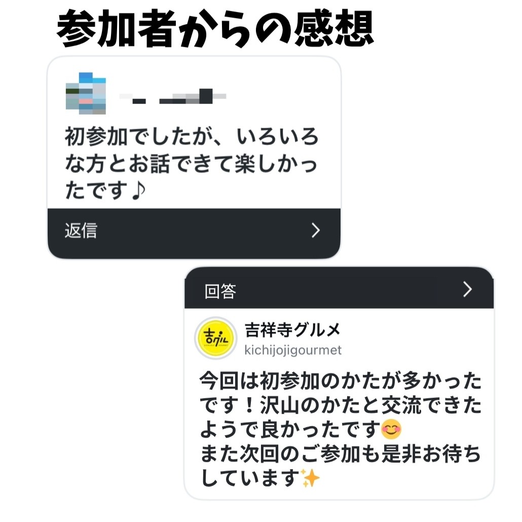 前回「第4回 吉飲み(吉祥寺飲み会)」の参加者の声