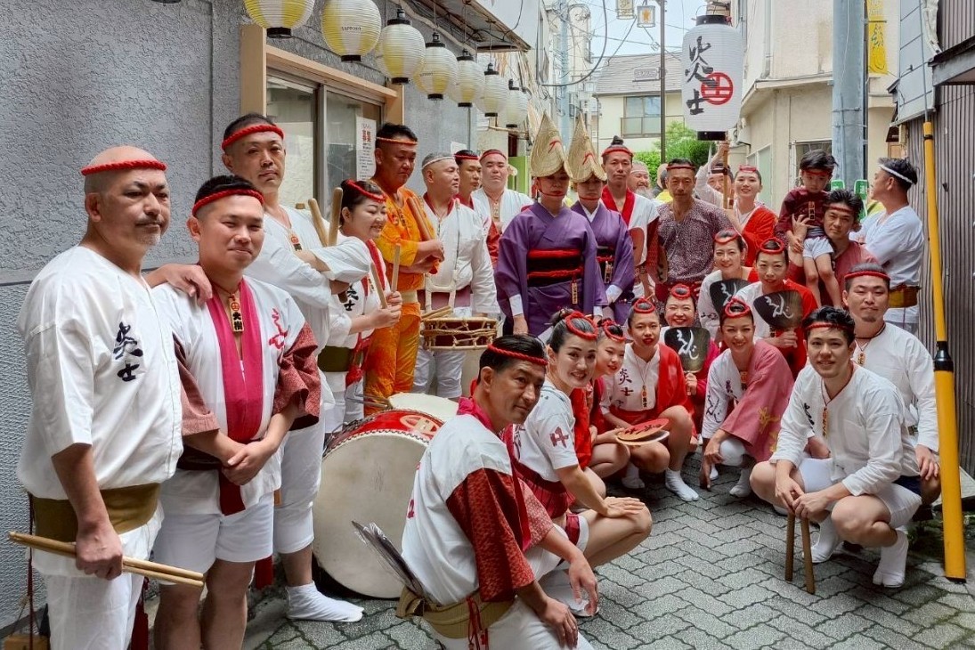 地元吉祥寺で、東京都武蔵野市立本宿小学校を中心に、小学生とその保護者たちで結成された太鼓チーム。楽しく賑やかな和太鼓の演奏に目を奪われます。