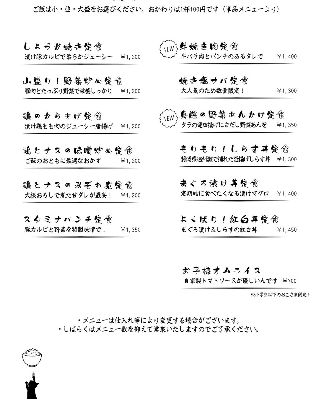 久我山の定食屋「しらすびより」のメニューと値段を紹介します。