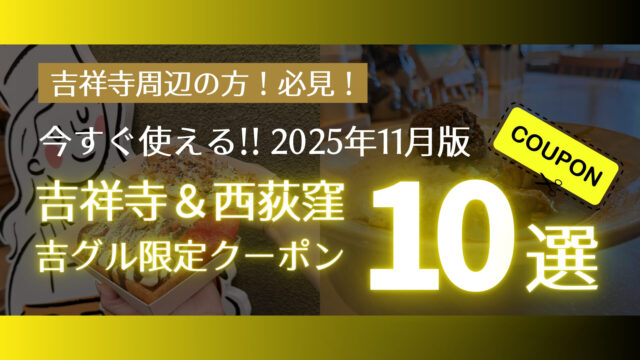 まとめ 【2025年11月版】吉祥寺と西荻窪のお得クーポン10選!吉グル限定コラボクーポン 2025年11月25日 吉グル編集長 https://kichijoji-gourmet.com/wp-content/uploads/2023/01/logo_600x360.png 吉グル