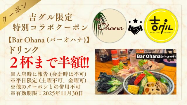 居酒屋 【吉グル割引あり】吉祥寺の鹿児島料理居酒屋「バーオハナ」でドリンク2杯まで半額の特別クーポン! 2025年10月2日 吉グル編集長 https://kichijoji-gourmet.com/wp-content/uploads/2023/01/logo_600x360.png 吉グル