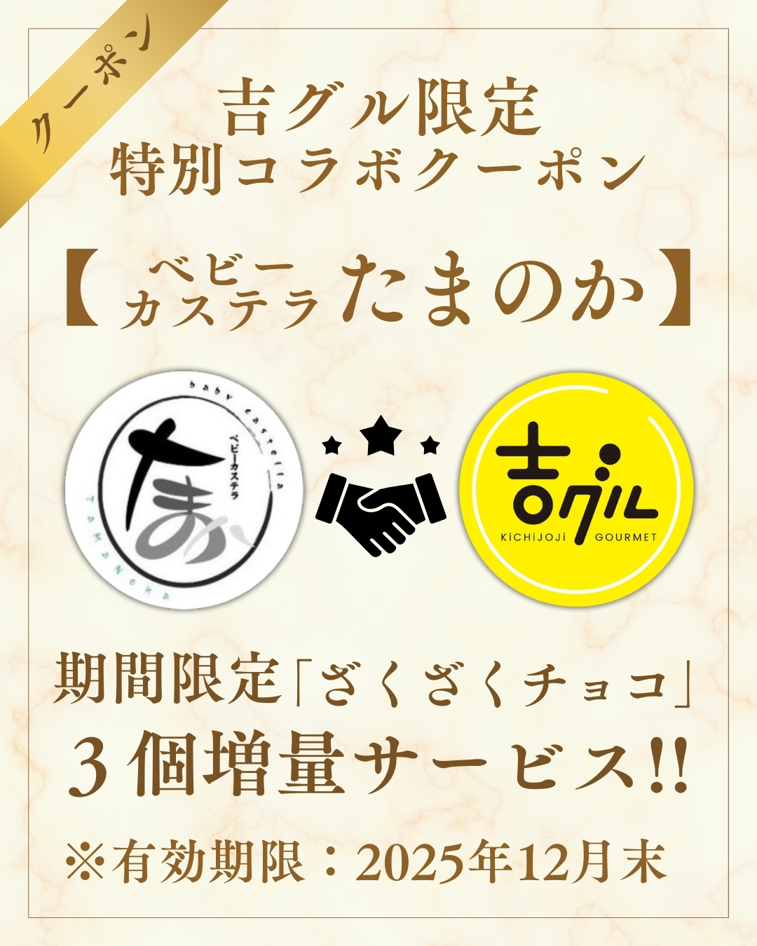 吉祥寺のベビーカステラ専門店「たまのか」にて、2025年12月中、いましか味わえない期間限定メニュー「ざくざくチョコ」味のベビーカステラを販売中です!数量限定で無くなり次第終了なのでお早めに!