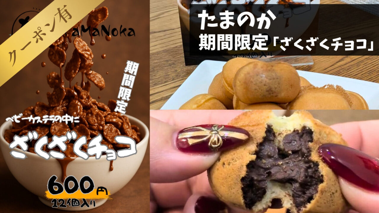 吉祥寺のベビーカステラ専門店「たまのか」にて、2025年12月中、いましか味わえない期間限定メニュー「ざくざくチョコ」味のベビーカステラを販売中です!
