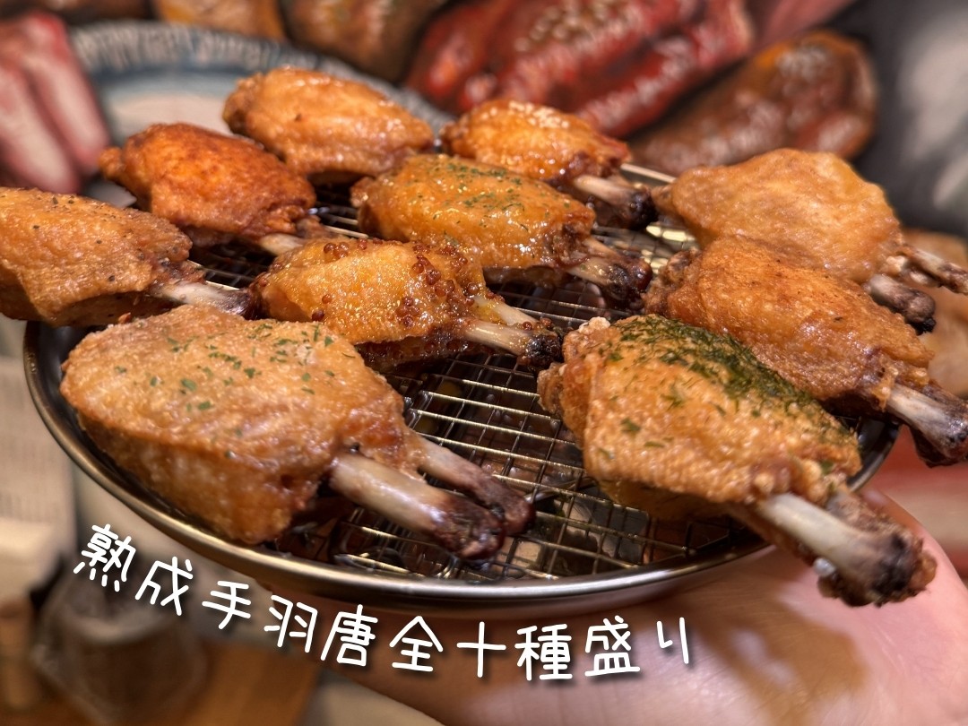 このお店に来たら全種類の手羽唐が楽しめる「熟成手羽唐全十種盛り」は注文必須😆✨️