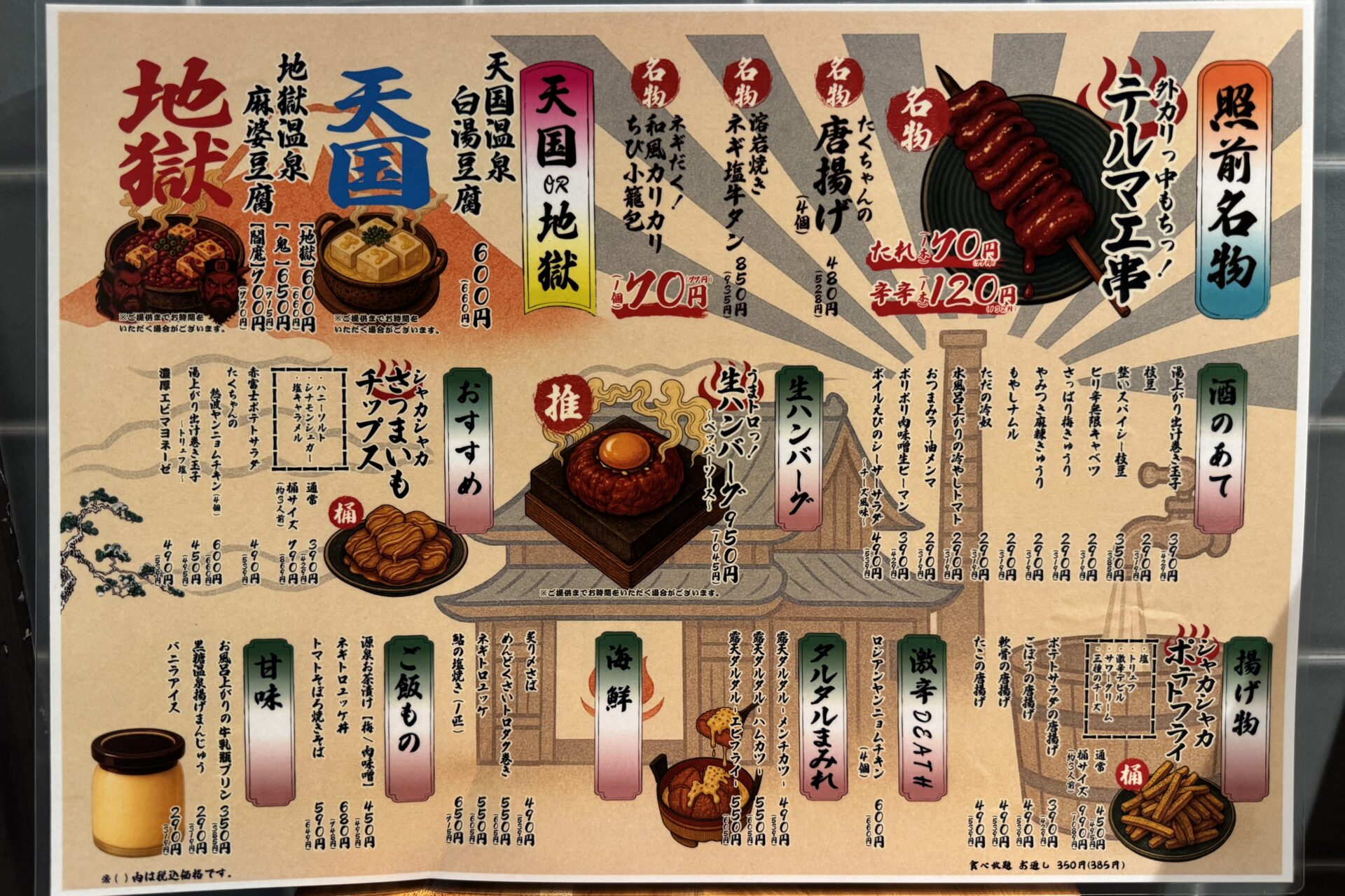荻窪の居酒屋「大衆酒泉テルマエ」のメニューと値段