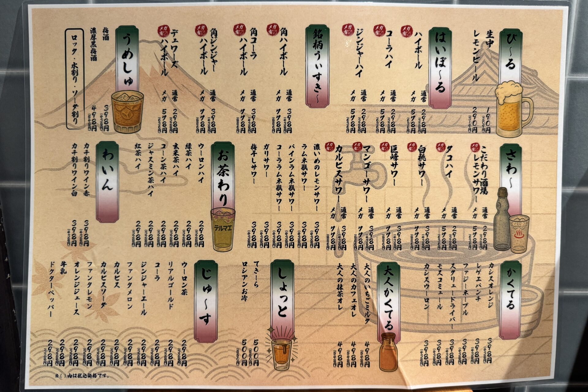 【大衆酒泉テルマエ荻窪駅前泉のドリンクメニュー】
