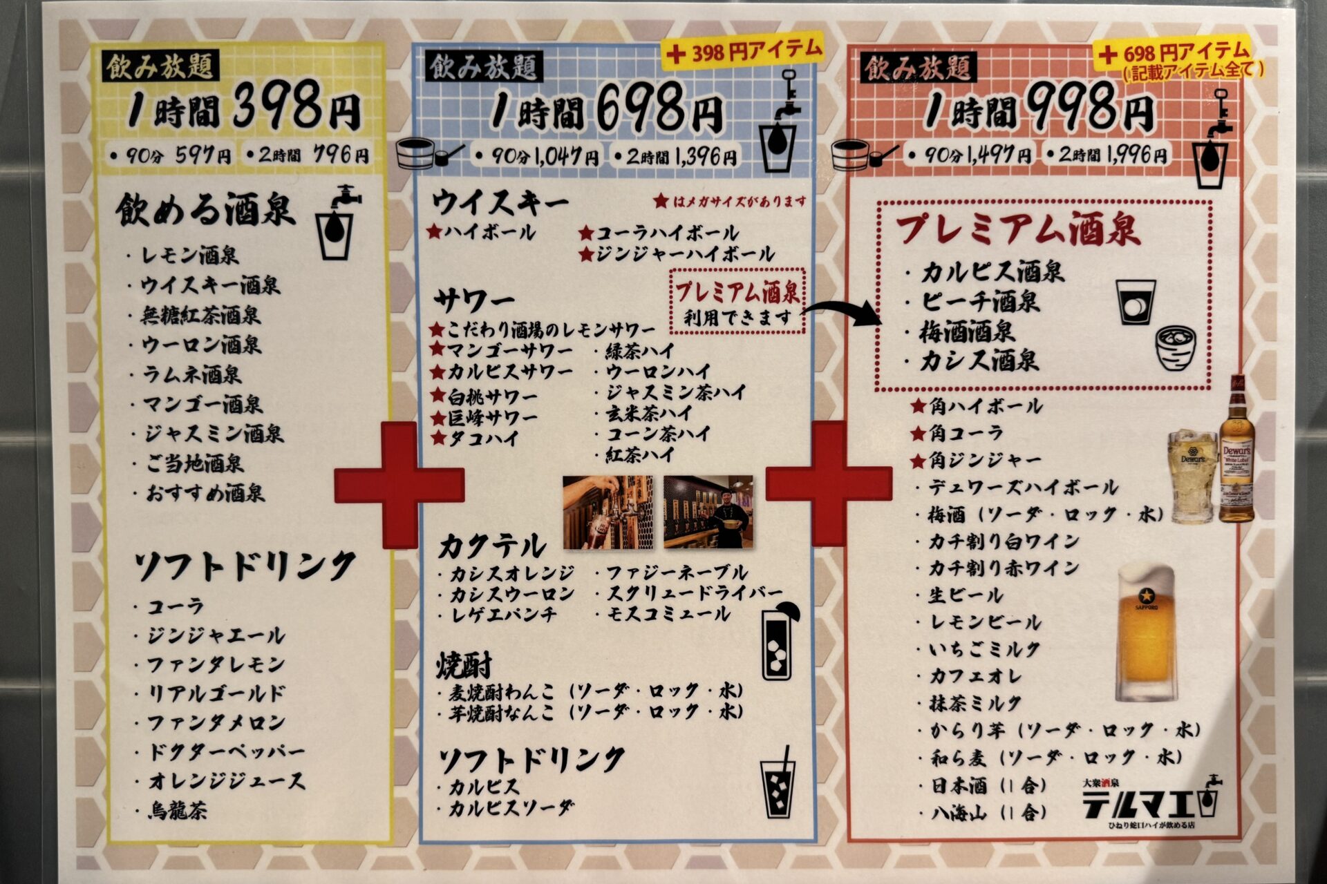 【大衆酒泉テルマエ荻窪駅前泉の飲み放題メニュー】