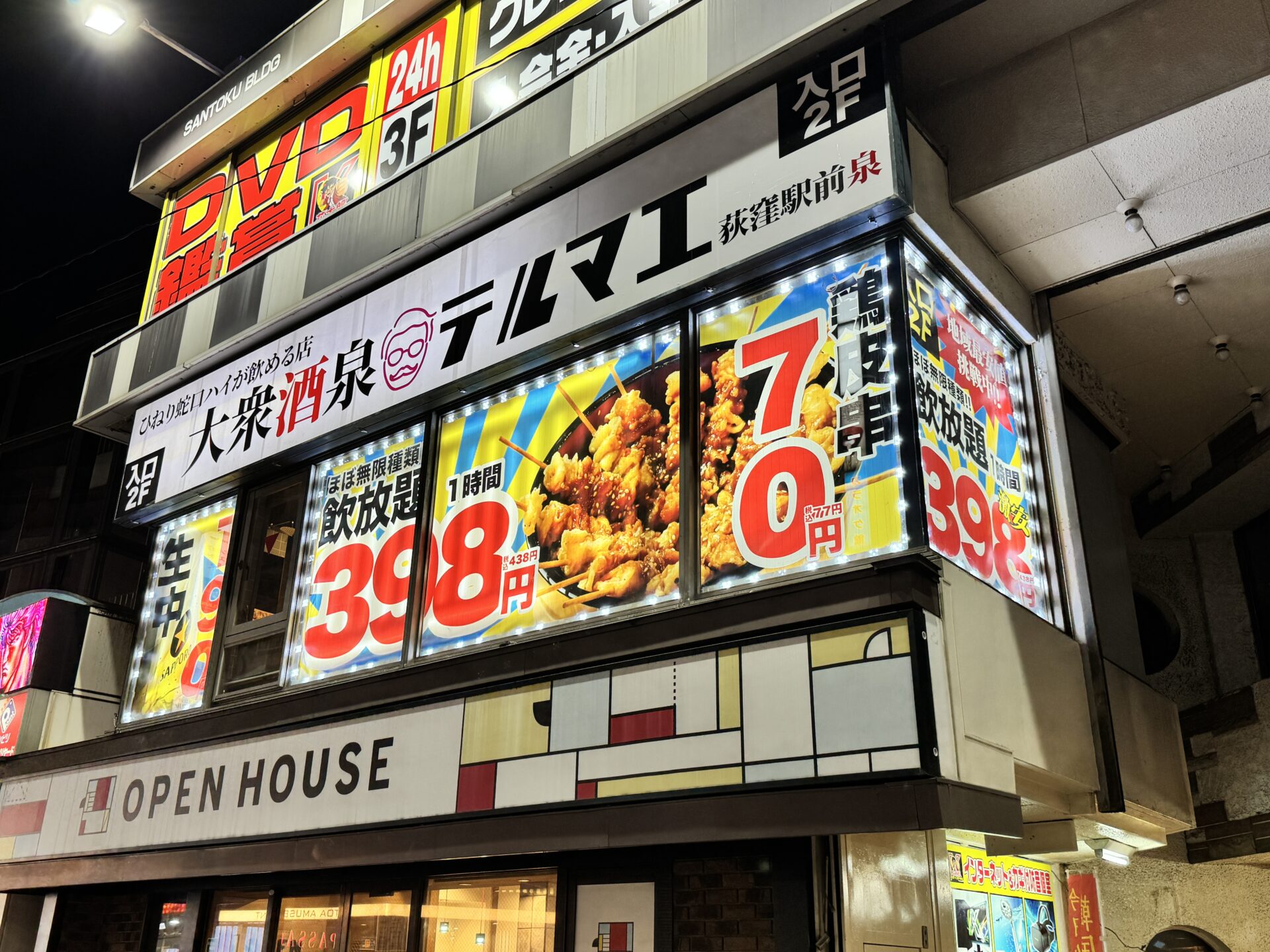 荻窪の居酒屋「大衆酒泉テルマエ」の外観を紹介します。