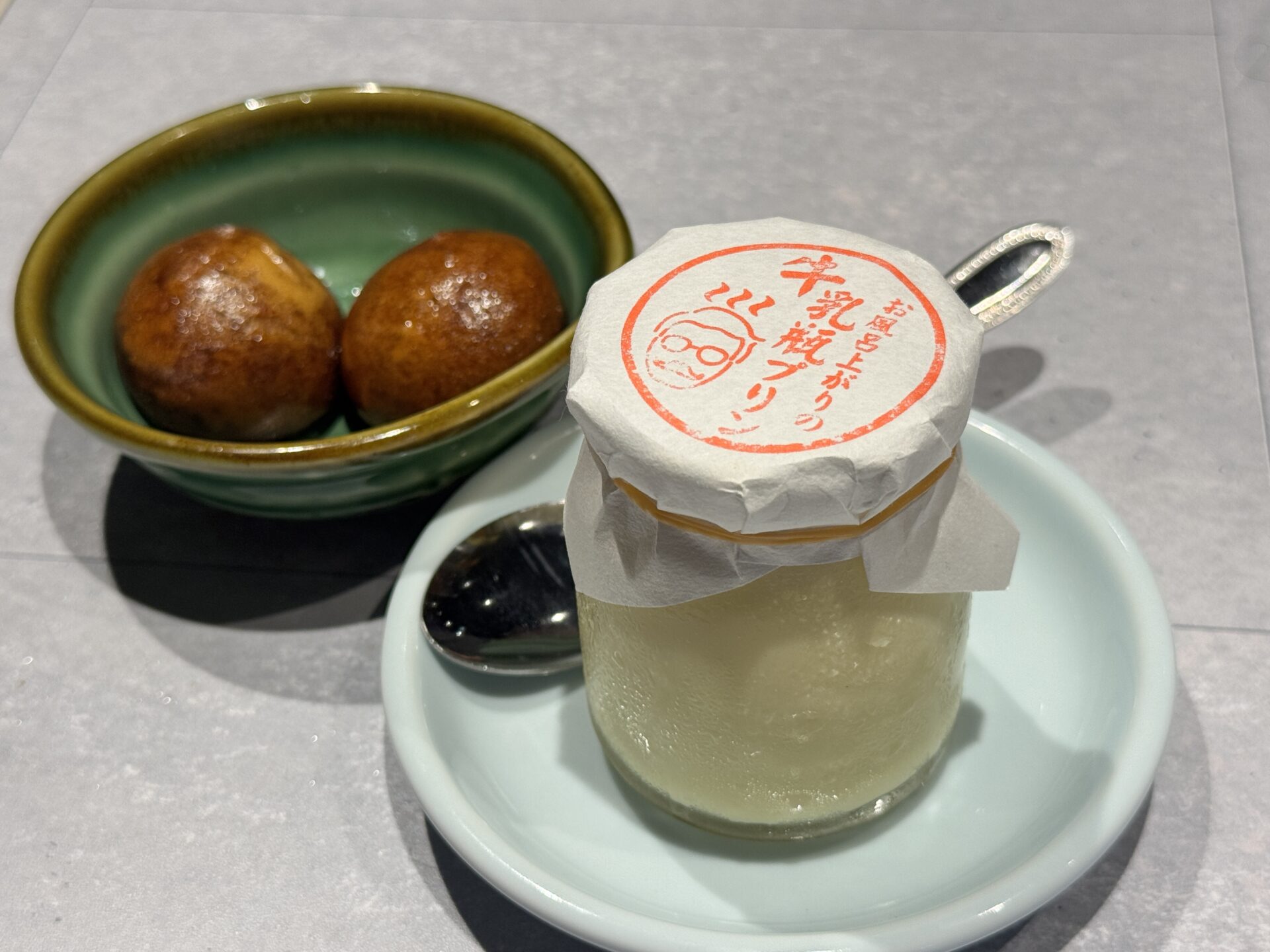 黒糖温泉揚げまんじゅうと牛乳瓶プリン