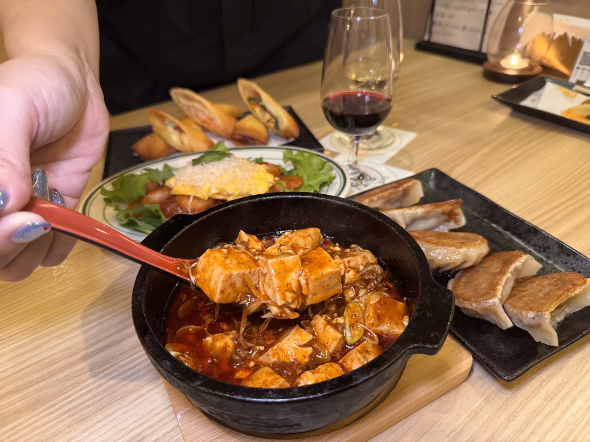 独自ブレンドの豆板醤を使用した本格的な辛さ!ぐつぐつの迫力満点の麻婆豆腐!やけどに注意🌶️